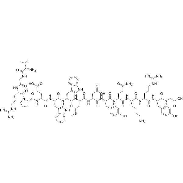 描述:BAM(8-22) 是前脑啡肽 A 的蛋白水解切割产物,是 Mas 相关的 G 蛋白偶联受体 (Mrgprs),MrgprC11 和 hMrgprX1 的有效激活剂,并以 Mrgpr 依赖性方式诱导小鼠抓挠。