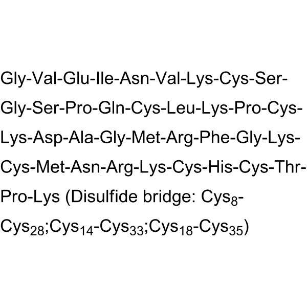 序列:GVEINVKCSGSPQCLKPCKDAGMRFGKCMNRKCHCTPK (Disulfide bridge: Cys8-Cys28;Cys14-Cys33;Cys18-Cys35)