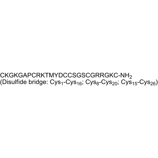 序列:CKGKGAPCRKTMYDCCSGSCGRRGKC-NH2 (Disulfide bridge: Cys1-Cys16; Cys8-Cys20; Cys15-Cys26)