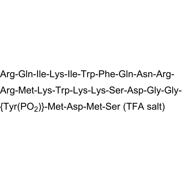 描述:740 Y-P TFA (740YPDGFR; PDGFR 740Y-P) 是一个有效的,具有细胞渗透性的 PI3K 激活剂。740 Y-P TFA 很容易结合含有 p85 的 N- 和 C- 末端 SH2 结构域的 GST 融合蛋白,但不能单独结合 GST。