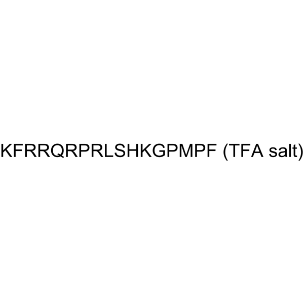 描述:Apelin-17(human, bovine) TFA是一种内源性孤儿 G 蛋白偶联受体 APJ 激动剂。Apelin-17(human, bovine) TFA 与在 HEK 293 细胞中表达的人 APJ 受体结合 (pIC50)。Apelin-17(human, bovine) TFA 阻断 HIV-1 和 HIV-2 毒株进入表达 APJ 的 NP-2/CD4 细胞。