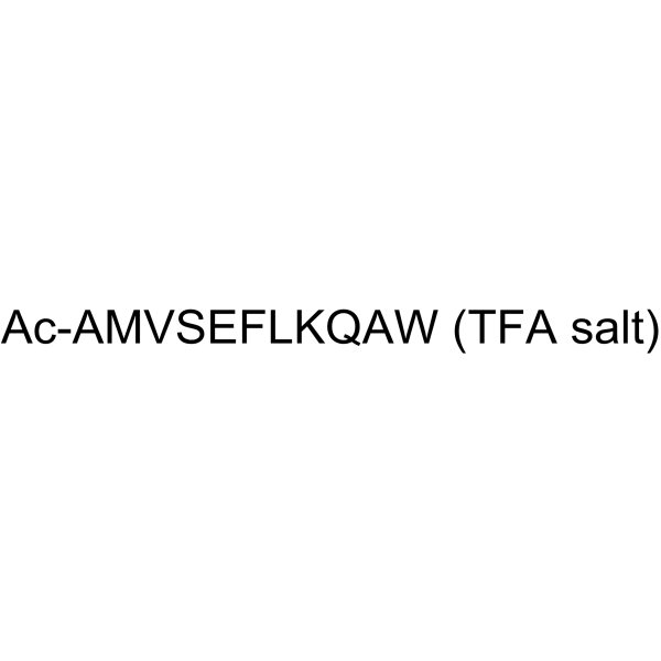 描述:187-1, N-WASP inhibitor TFA 是一种14-aa 环肽,也是一种变构神经 Wiskott Aldrich 综合征蛋白 (N-WASP) 抑制剂。187-1, N-WASP inhibitor TFA 有效抑制由磷脂酰肌醇 4,5-二磷酸酯 (PIP2) 诱导的肌动蛋白装配,IC50 为 2 μM。187-1, N-WASP inhibitor TFA 通过稳定蛋白质的自抑制状态,阻止了 N-WASP 激活 Arp2/3。