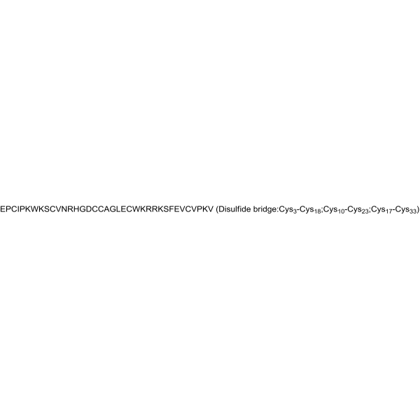 序列:EPCIPKWKSCVNRHGDCCAGLECWKRRKSFEVCVPKV (Disulfide bridge:Cys3-Cys18;Cys10-Cys23;Cys17-Cys33)