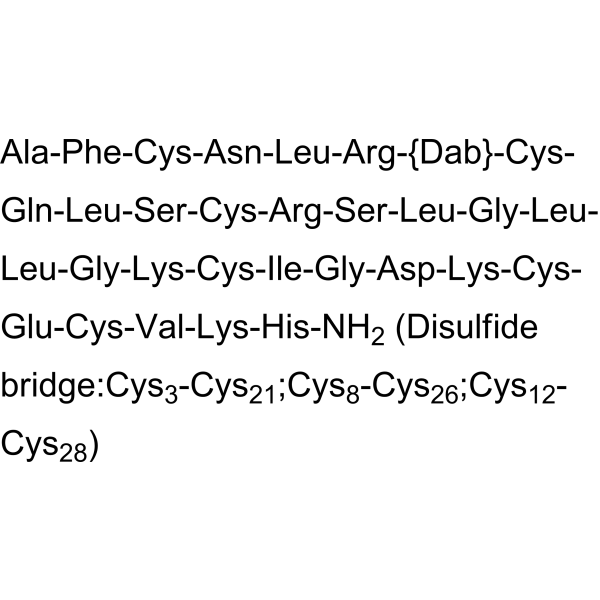 序列:AFCNLR-{Dab}-CQLSCRSLGLLGKCIGDKCECVKH-NH2 (Disulfide bridge:Cys3-Cys21;Cys8-Cys26;Cys12-Cys28)