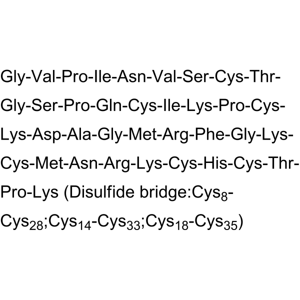 序列:GVPINVSCTGSPQCIKPCKDAGMRFGKCMNRKCHCTPK (Disulfide bridge:Cys8-Cys28;Cys14-Cys33;Cys18-Cys35)
