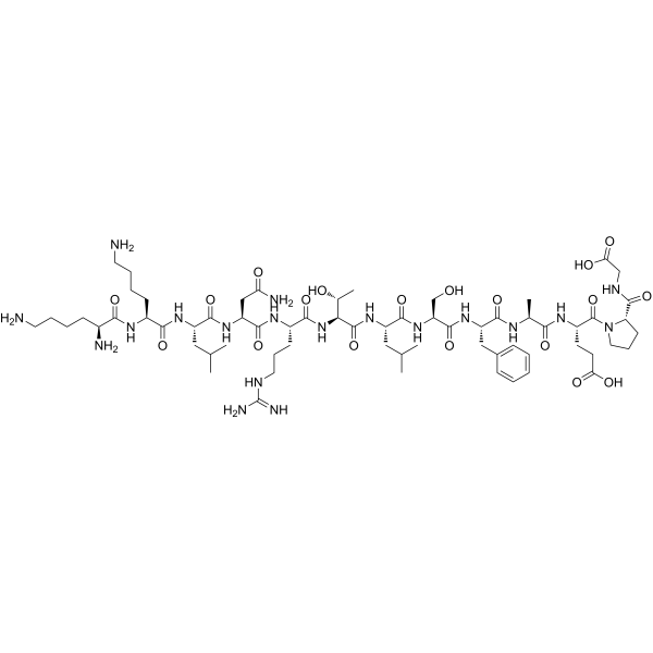 描述:Ziptide 是多种激酶的底物,如 MAPK蛋白激酶 2 (MAPKAPK2, Km = 5 μM)、MAPKAPK3 (Km = 30 μM)、PARK (Km = 40 μM)、checkpoint kinase 1 (Chk1, Km = 5 μM), AMP激活蛋白激酶 (AMPK, Km = 75 μM) 以及钙/钙调素依赖性蛋白激酶 II (CamKII, Km = 300 μM)。