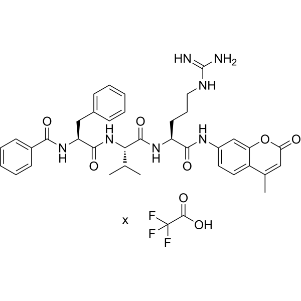 描述:Bz-FVR-AMC TFA 是一种组织蛋白酶荧光底物,kcat/Km 值为 1070 mM-1s-1。高浓度 BZ-FVR-AMC 对底物有抑制作用。