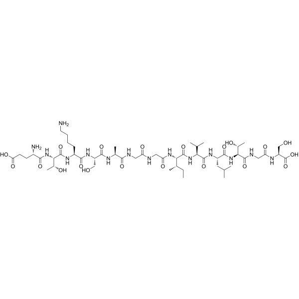 描述:Syntide 2 是一种 Ca2+- 和钙调蛋白 (CaM) 依赖性蛋白激酶 II (CaMKII) 底物肽,选择性地抑制赤霉素 (GA) 反应,使组成和脱落酸调节事件不受影响。