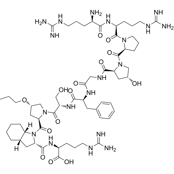 描述:NPC 17731 是一种新的 Bradykinin(BK) 受体拮抗剂。NPC 17731 分别拮抗纵向平滑肌中 BK 引起的收缩和松弛反应,IC50 值分别为 23 and 29 nM。
