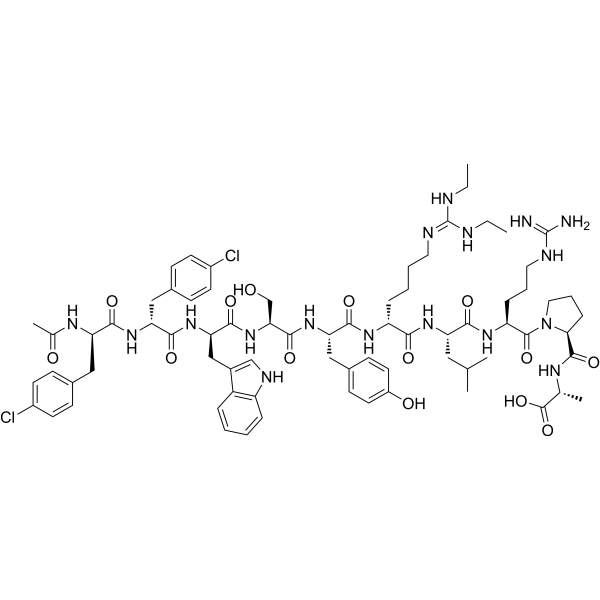 序列:Ac-{d-Phe}-{d-Phe}-{d-Trp}-SY-{d-Har}-LRP-{d-Ala}