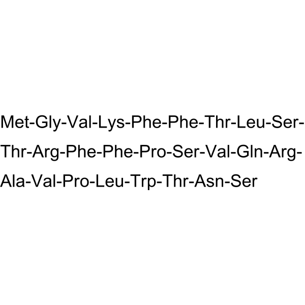 描述:SHBG 141–161 是一种 GPRC6A 受体激动剂。SHBG 141–161 能够模拟 GPRC6A 的内源性激动剂未羧基化的骨钙素的作用,通过与 GPRC6A 结合并促进下游信号传导,增加睾酮和胰岛素的分泌。SHBG 141–161 也通过与 GPRC6A 的外细胞域结合,减少 GPRC6A 与 GDP 蛋白的亲和力,从而影响信号转导的动态。SHBG 141–161 可用于 GPRC6A 在能量代谢和内分泌调节中的研究。