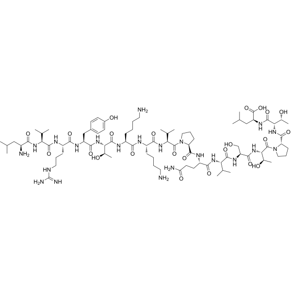描述:Multi-Leu peptide (ML-peptide) 是一种 PACE4 的强效抑制剂 (Ki=22 nM)。Multi-Leu peptide 通过模拟 PACE4 的底物序列,与 PACE4 的活性位点竞争性结合,从而抑制其催化活性。Multi-Leu peptide 可以用于研究 PACE4 在前列腺癌发展中的具体作用机制。