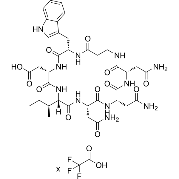 描述:aStAx-35R 是一种钉书肽,可拮抗 β-catenin 的核形式并抑制 Wnt 信号传导。aStAx-35R 竞争性抑制 β-catenin 与 TCF4 的结合。aStAx-35R 选择性地诱导 Wnt 依赖性癌细胞的生长抑制。