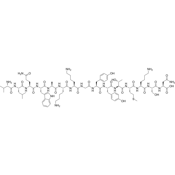 描述:KGYY15 (Mouse KGYY15) 是一种 CD40 靶向肽,可微弱地抑制 CD40-CD40L 相互作用,IC50 大于 1mM。KGYY15 在 100 μM 时可激活 33% 的 NF-κB 通路。