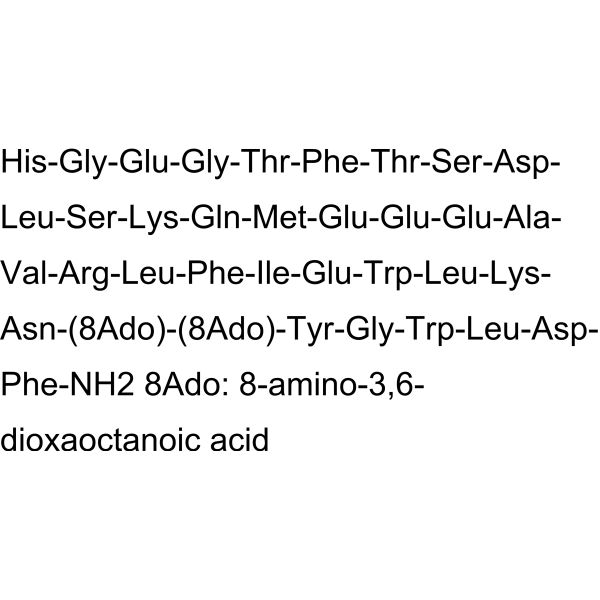序列:HGEGTFTSDLSKQMEEEAVRLFIEWLKN-(8Ado)-(8Ado)-YGWLDF-NH2 8Ado: 8-amino-3,6-dioxaoctanoic acid