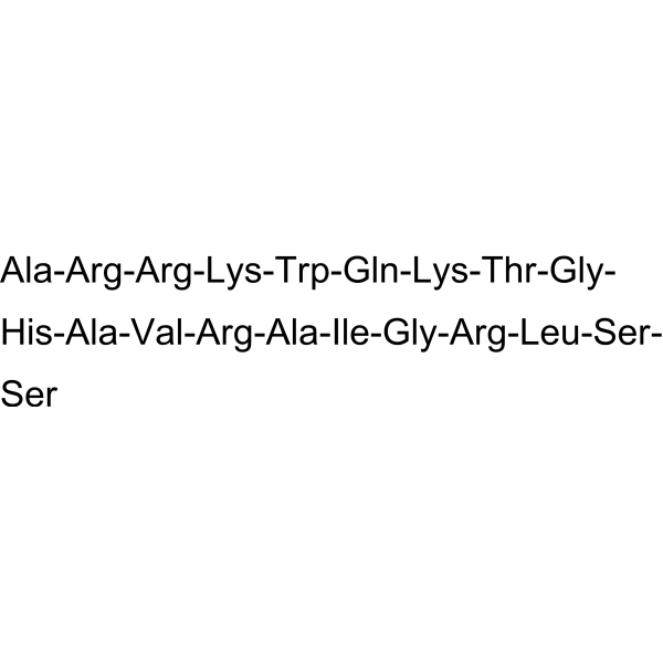 描述:TAT-CBD3A6K 是一种修饰的 TAT-CBD3 肽。TAT-CBD3A6K 减少背根神经节 (DRG) 神经元中的 T 型和 R 型电压依赖性钙电流。TAT-CBD3A6K 通过阻止 CRMP-2 介导的 T 型和 R 型钙通道功能增强,在 AIDS 诱导的周围神经病变模型中显示出抗伤害作用