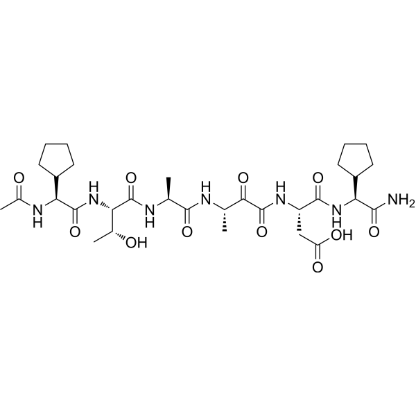描述:Ac-{Cpg}-Thr-Ala-{Ala(CO)}-Asp-{Cpg}-NH2 (compound 40) 是一种有效的 Plasmodium 蛋白酶 1 (SUB1) 抑制剂。SUB1-IN-1 对间日疟原虫和恶性疟原虫 SUB1 (Pv- 和 PfSUB1) 的 IC50 值分别为 12 nM 和 10 nM。