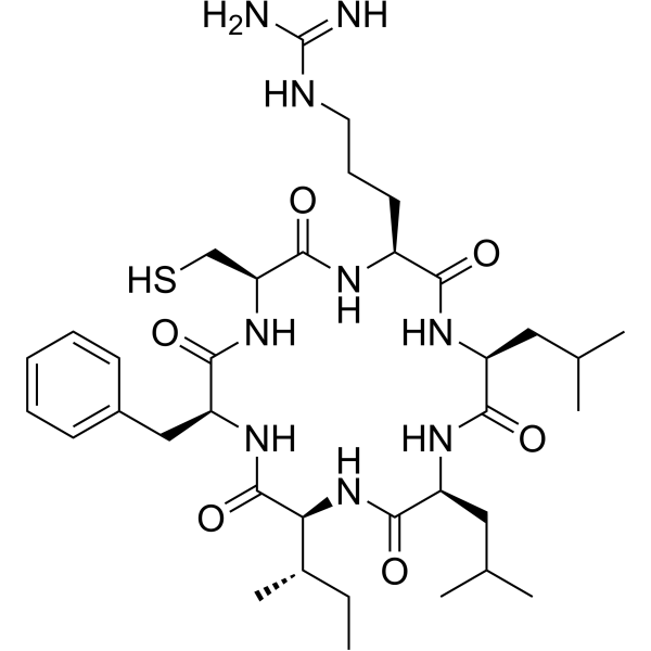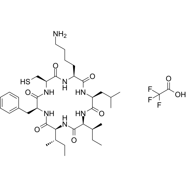 描述:Cyclo CRLLIF 是缺氧诱导因子 HIF1 和 HIF2 的双重抑制剂,可破坏 HIF1-α 和 HIF2-α 与 HIF1-β 的相互作用,并对 HIF1-α 和 HIF2-α PAS-B 结构域的 KD 分别为 14.5 和 10.2 μM。