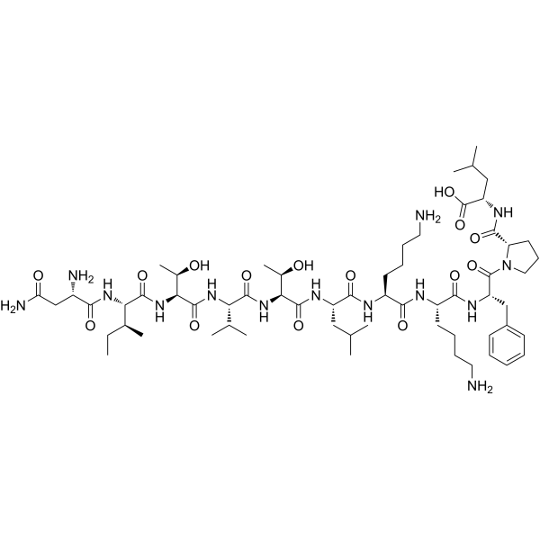 描述:TCL1(10-24) 是人类 TCL1 的 betaA 链。TCL1(10-24) 是一种 Akt 抑制剂,与 Akt PH 结构域相互作用,阻止磷酸肌醇结合,从而抑制 Akt 的膜易位和激活。TCL1(10-24) 抑制细胞增殖和抗凋亡,在体内具有肿瘤生长作用。