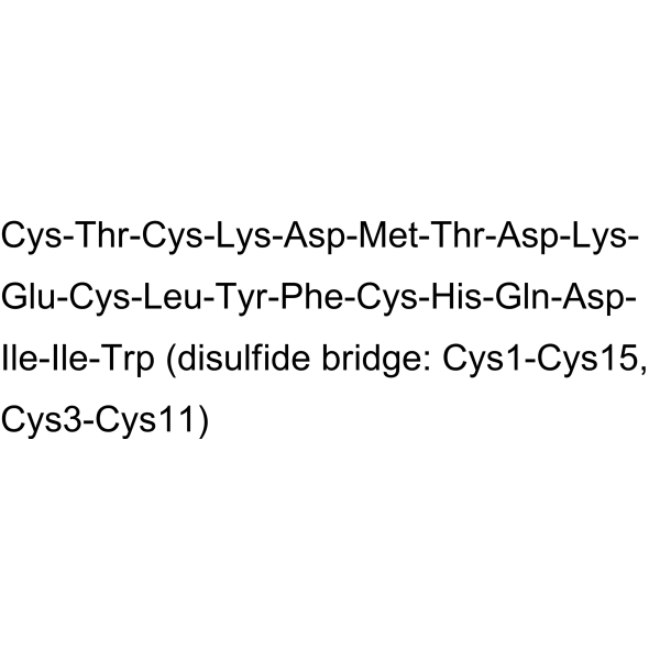 序列:CTCKDMTDKECLYFCHQDIIW (disulfide bridge: Cys1-Cys15, Cys3-Cys11)