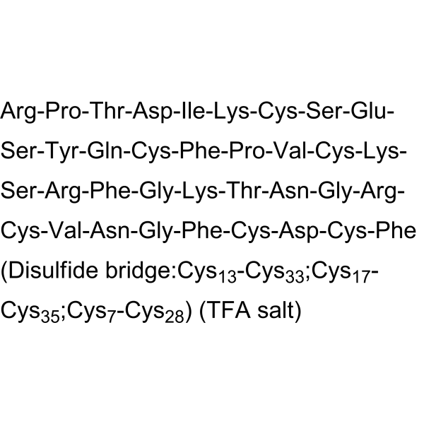 序列:RPTDIKCSESYQCFPVCKSRFGKTNGRCVNGFCDCF (Disulfide bridge:Cys13-Cys33;Cys17-Cys35;Cys7-Cys28)