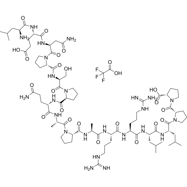 描述:BigLEN(mouse) TFA 是一种 GPR171 激动剂,BigLEN(mouse) TFA 是一种 proSAAS 衍生的神经肽。BigLEN(mouse) TFA 调节小鼠的食物摄入,还依赖于突触后 G 蛋白激活的过程,抑制谷氨酸向室旁核的小细胞神经元的释放。