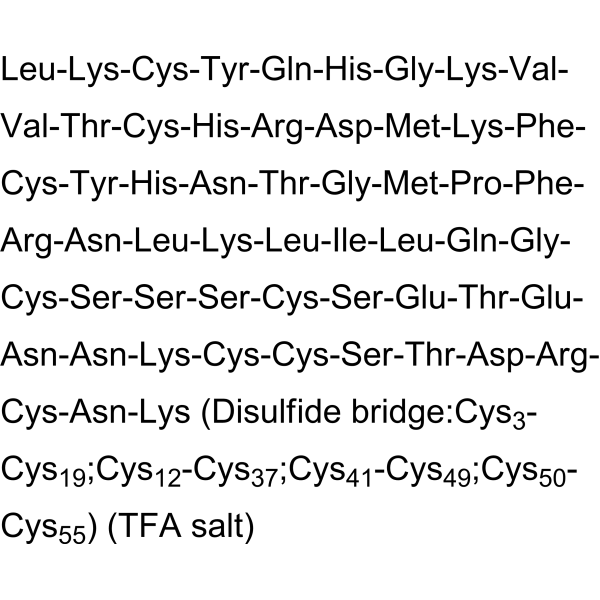 序列:LKCYQHGKVVTCHRDMKFCYHNTGMPFRNLKLILQGCSSSCSETENNKCCSTDRCNK (Disulfide bridge:Cys3-Cys19;Cys12-Cys37;Cys41-Cys49;Cys50-Cys55)