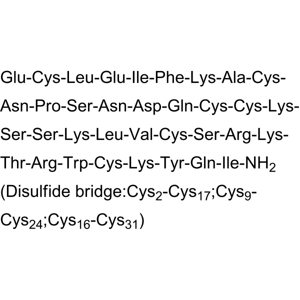 序列:ECLEIFKACNPSNDQCCKSSKLVCSRKTRWCKYQI-NH2 (Disulfide bridge:Cys2-Cys17;Cys9-Cys24;Cys16-Cys31)