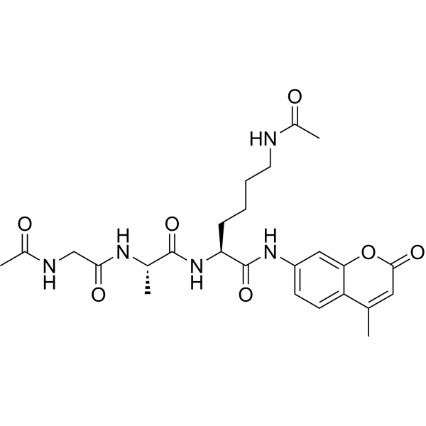 描述:Ac-Gly-Ala-Lys(Ac)-AMC 是一种用于测定蛋白酶活性的荧光底物。Ac-Gly-Ala-Lys(Ac)-AMC 发生水解并释放荧光产物 7-氨基-4-甲基香豆素 (AMC)。AMC 在紫外光照射下呈荧光,可发出荧光信号。