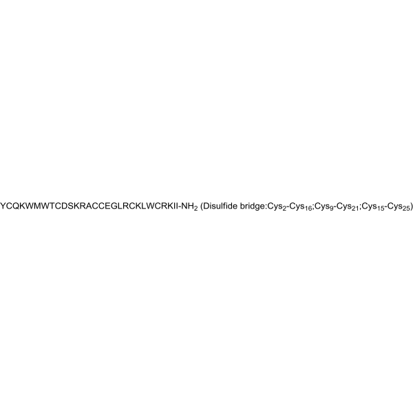 序列:YCQKWMWTCDSKRACCEGLRCKLWCRKII-NH2 (Disulfide bridge:Cys2-Cys16;Cys9-Cys21;Cys15-Cys25)