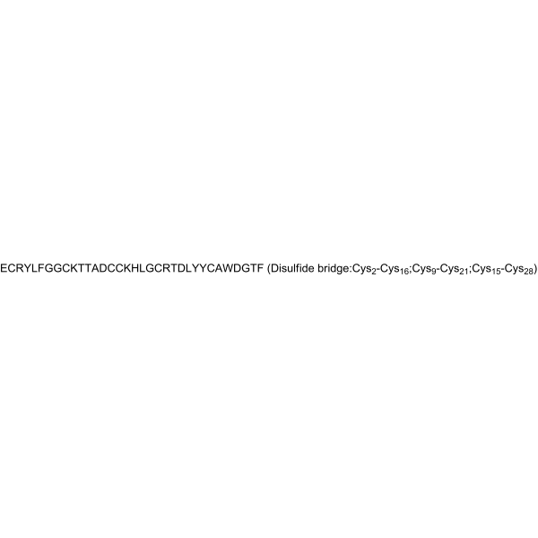 序列:ECRYLFGGCKTTADCCKHLGCRTDLYYCAWDGTF (Disulfide bridge:Cys2-Cys16;Cys9-Cys21;Cys15-Cys28)