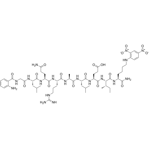 描述:2Abz-GLQRALEI-Lys(Dnp)-NH2 是一种有生物活性的肽。(C4 P4-P4′底物)