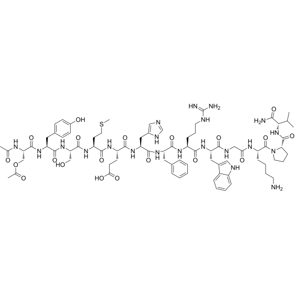 描述:(Diacetyl)-α-MSH 是一种肽类化合物,在 α-MSH 分子中引入了乙二酰基(Diacetyl)基团,可增加多肽的生物活性。
