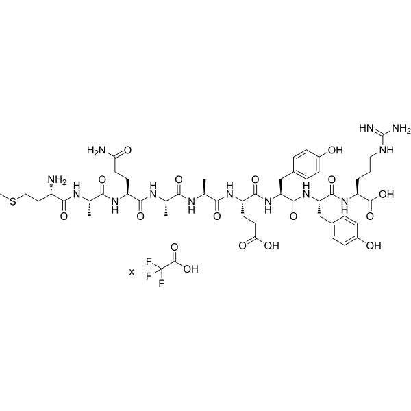描述:MAQAAEYYR TFA 是一种抗氧化活性肽,可从 C-藻蓝蛋白的胰酶水解产物中分离出来。MAQAAEYYR TFA 具有较高的 DPPH 和 ABTS 自由基清除能力。MAQAAEYYR TFA 保护斑马鱼幼虫免受 H2O2 诱导的氧化损伤。