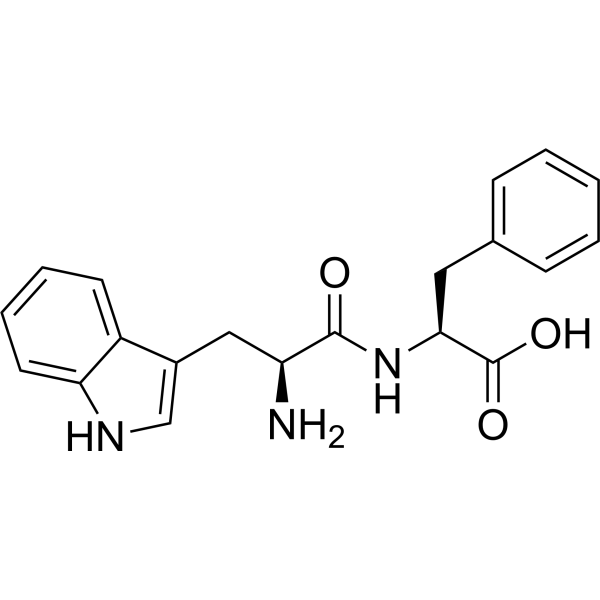 描述:H-Trp-Phe-OH 是一种二肽,由色氨酸和苯丙氨酸组成 (Trp-Phe)。H-Trp-Phe-OH 还是一种降压肽,对血管紧张素转换酶 (ACE) 有抑制活性,剂量依赖性增加 NO 水平,降低内皮素-1 (ET-1)含量。H-Trp-Phe-OH (2 mg/kg;皮下注射;3 天内注射 6 次) 引起雌性小鼠的卵巢重量增加。