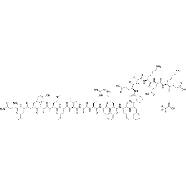 描述:γ-Fibrinogen377-395TFA是一种纤维蛋白原衍生的抑制肽,也是纤维蛋白原表位。γ-Fibrinogen377-395TFA在体外可阻断小胶质细胞激活,抑制纤维蛋白与Mac-1的相互作用,γ-Fibrinogen377-395TFA在小鼠体内可抑制实验性自身免疫性脑脊髓炎(EAE)。γ-Fibrinogen377-395TFA可用于研究多发性硬化症(MS)和其他与血脑屏障破坏和小胶质细胞激活相关的神经炎症性疾病。