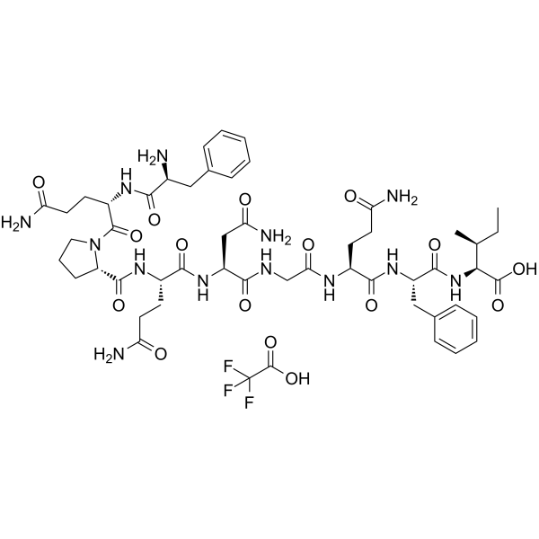 描述:GP(33-41)TFA是一种由9个氨基酸残基组成的多肽,它是淋巴细胞性脉络丛脑膜炎病毒GP1抗原决定基中的最佳序列。GP(33-41)TFA能够上调RMA-S(DbKb)细胞表面H-2Db分子,SC50值为344nM。