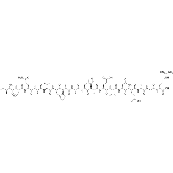 描述:α-Synuclein(61-95)(human)TFA是α-突触核蛋白(α-Synuclein)的疏水核心区域,可诱导神经元细胞死亡。α-Synuclein(61-95)(human)TFA可用于神经退行性疾病的研究,包括阿尔茨海默病(AD)和帕金森病(PD)。