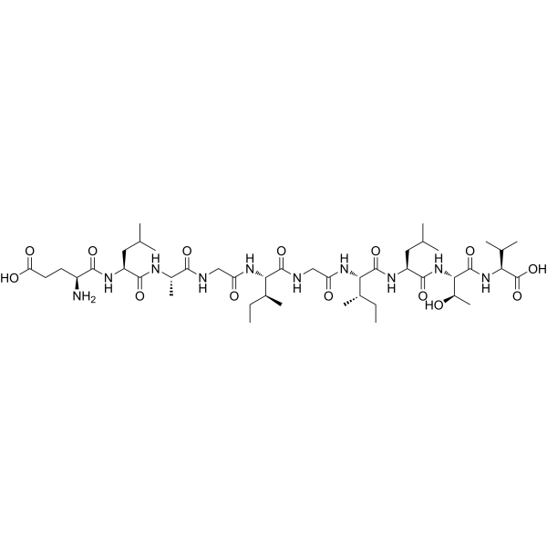 描述:Melan-A/MART-1analog([Leu27]-Melan-A,MART-1(26-35))是一种有生物活性的肽。(这种Melan-A(26-35)类似物(第27位由Leu取代Ala)显示出比天然Melan-A(26-35)更好的HLA-A*0201结合特性以及更好的免疫原性和抗原性。焦谷氨酰(pGlu)当谷氨酰胺(Q)或谷氨酸(E)位于序列N末端时,肽可能会自发形成。Q或E向pGlu的转化是自然发生的,并且一般认为pGlu的疏水性γ-内酰胺环可能在针对胃肠道蛋白酶的肽稳定性中发挥作用。因此,焦谷氨酰肽被认为是此类肽的正常子集,并在HPLC分析期间作为肽纯度的一部分包含在内。)