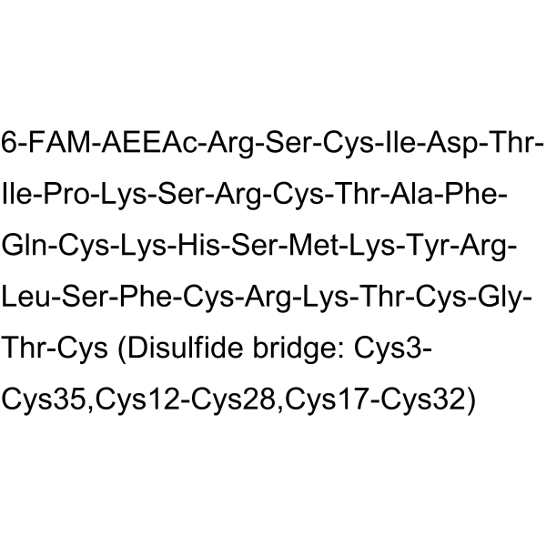 序列:6-FAM-AEEAc-RSCIDTIPKSRCTAFQCKHSMKYRLSFCRKTCGTC (Disulfide bridge: Cys3-Cys35,Cys12-Cys28,Cys17-Cys32)