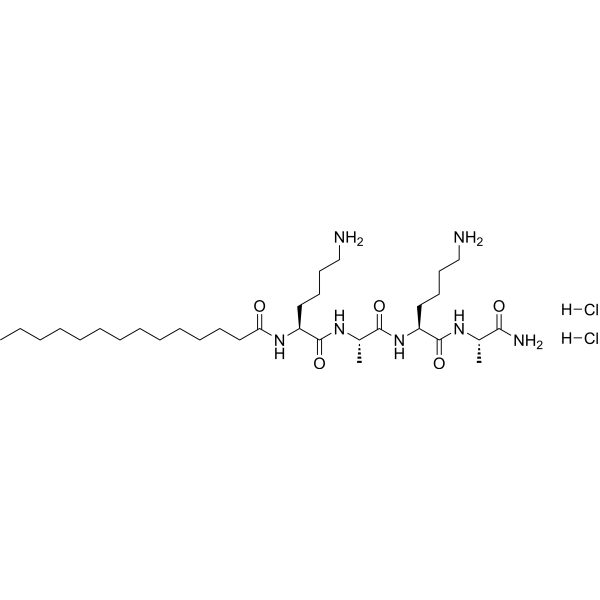 描述:Myristoyl tetrapeptide-12 dihydrochloride 是含有赖氨酸和丙氨酸的肽。Myristoyl tetrapeptide-12 dihydrochloride 在化妆品工业用作护发制剂。