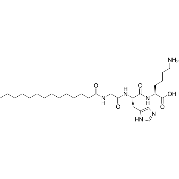 描述:Myristoyl tripeptide-1 是 Myristic acid (HY-N2041) 和 Tripeptide-1 的反应产物。Myristoyl tripeptide-1 在化妆品中用作皮肤调理剂。